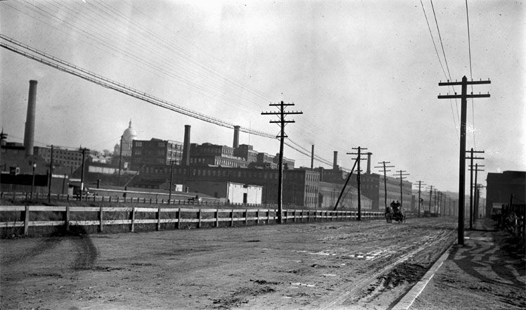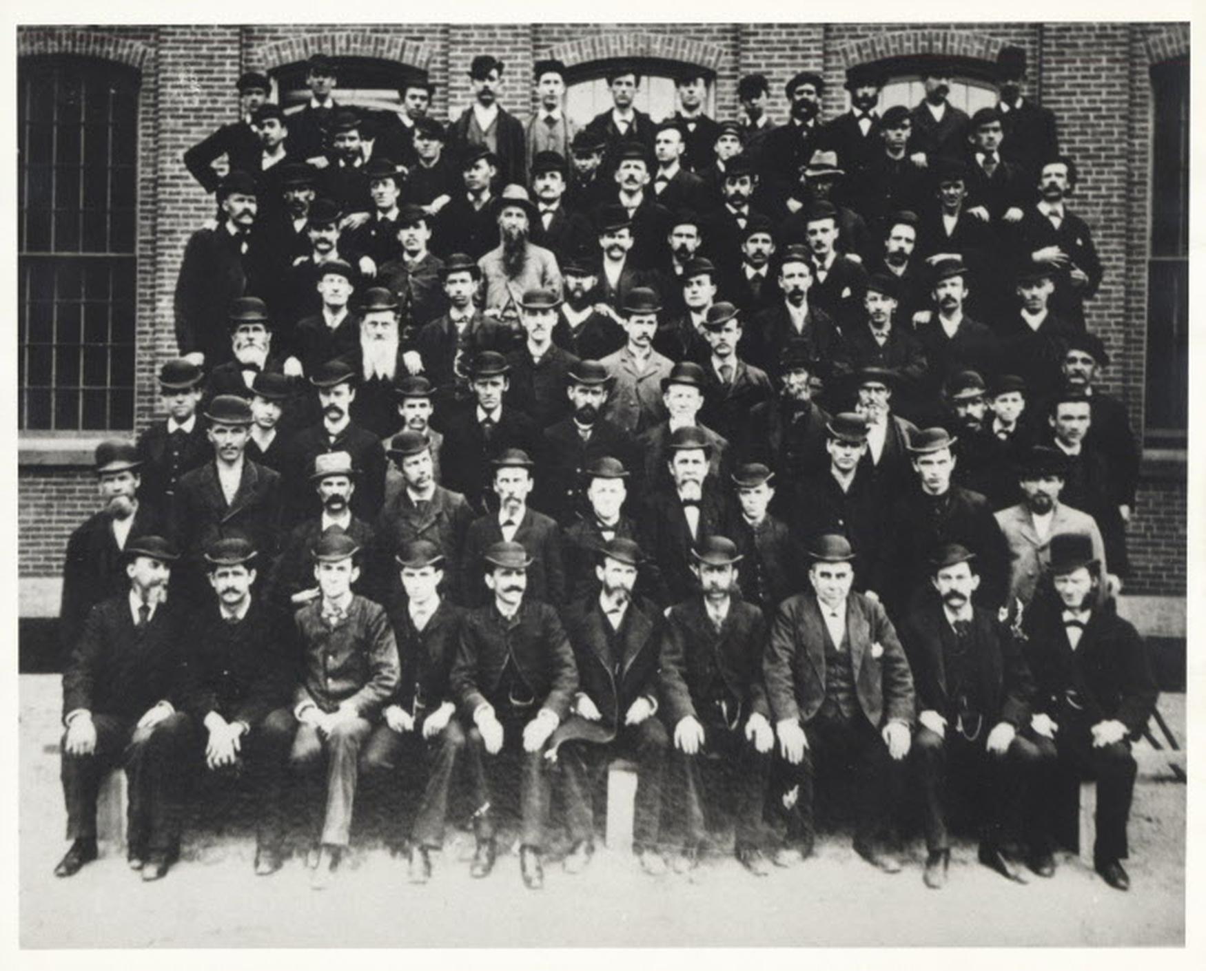 With business booming and the company expanding – including 300 employees working at 14 different locations – Brown & Sharpe purchased land on Promenade Street along the Woonasquatucket River in 1872. Employee Thomas McFarlane designed the first building – a 66,000-square-foot, brick, cast-iron and concrete structure that included spaces for all the company's functions - from design studios to production areas. The company filled out its 33-acre parcel (later reduced to 25 acres when a portion of the site was cleared to accommodate Route 95) with buildings closely linked with the development of various machine-tool products. Among the structures are a carpenter shop, powerhouse, machine shops, warehouses, grinding shop and steel storage bins.