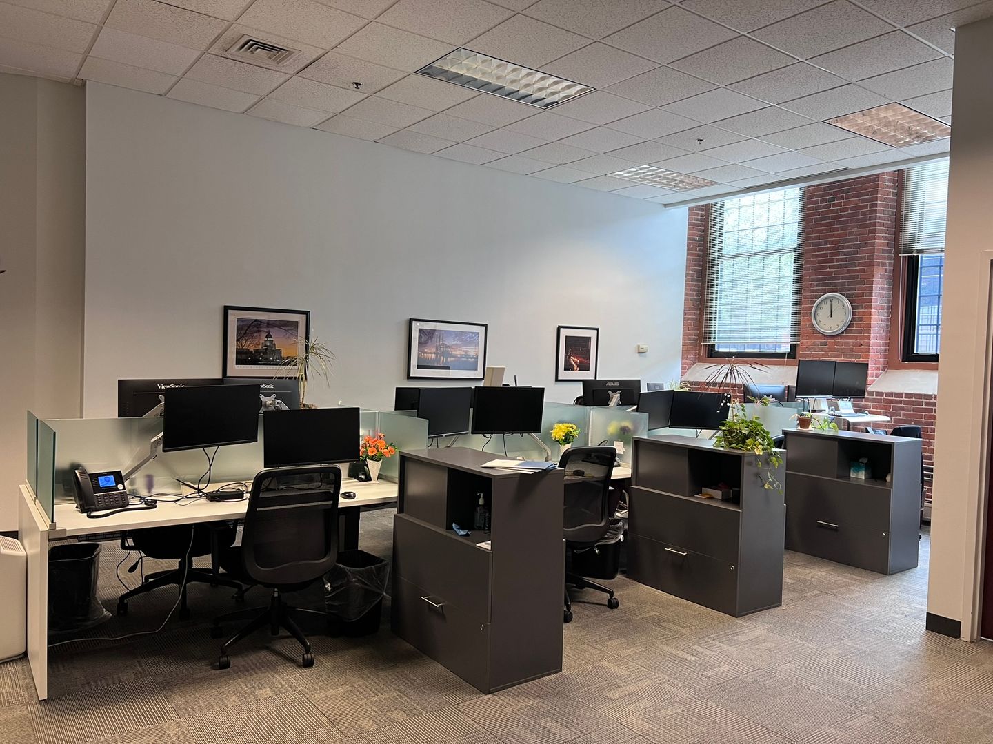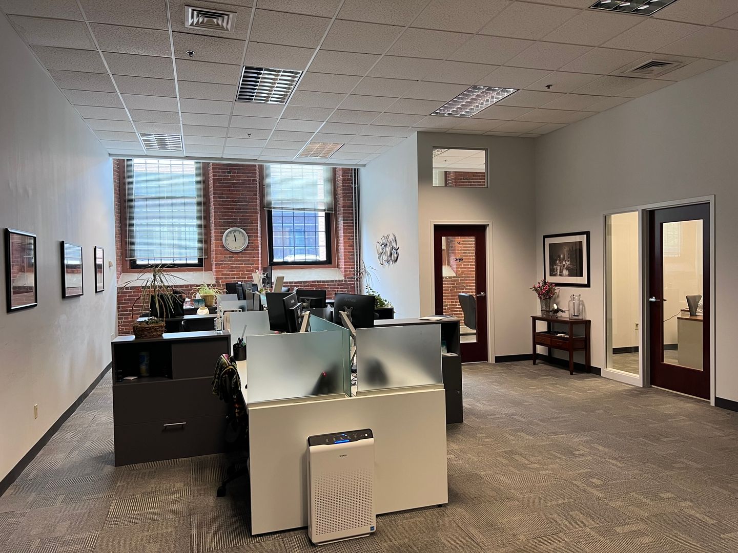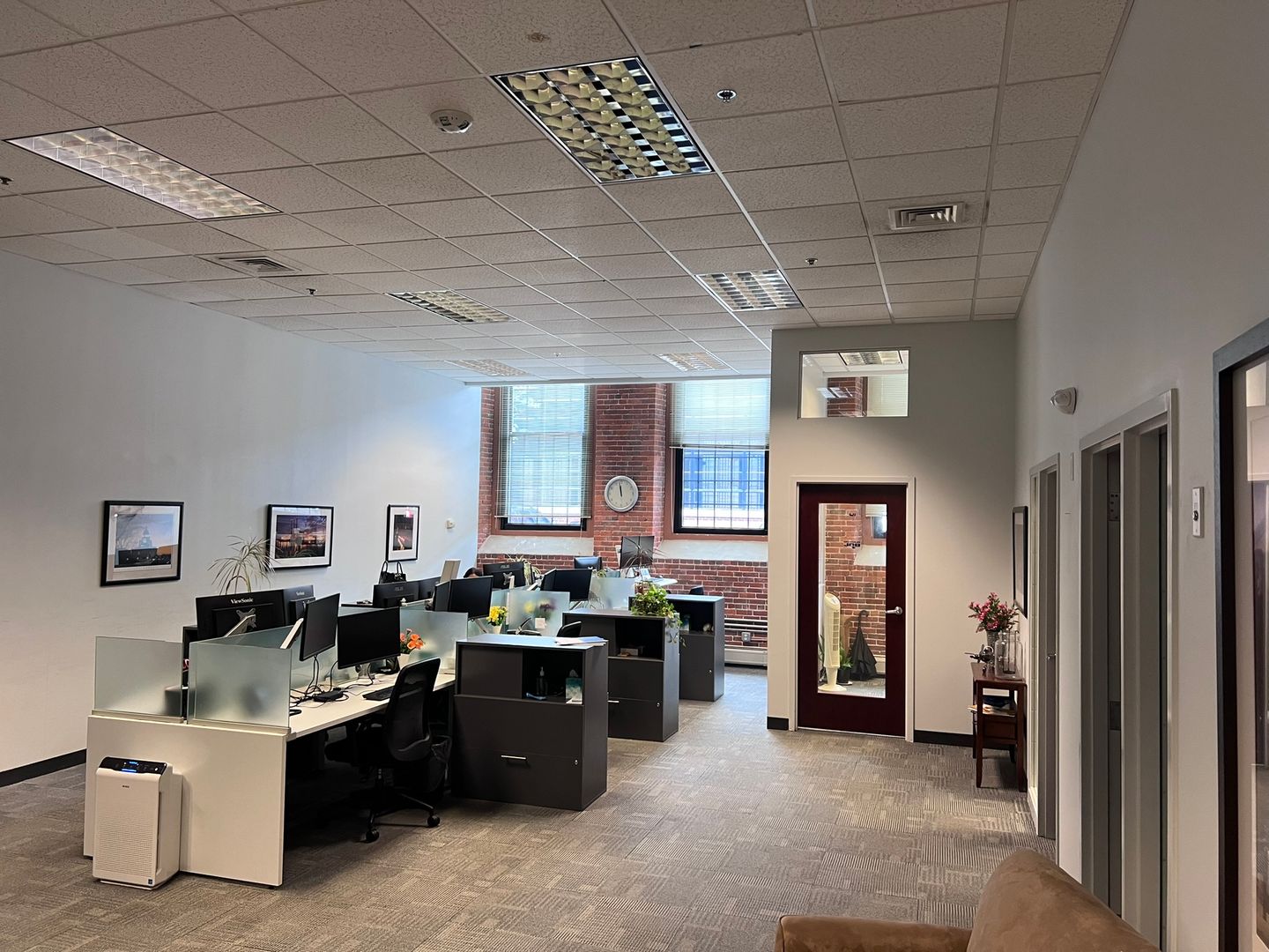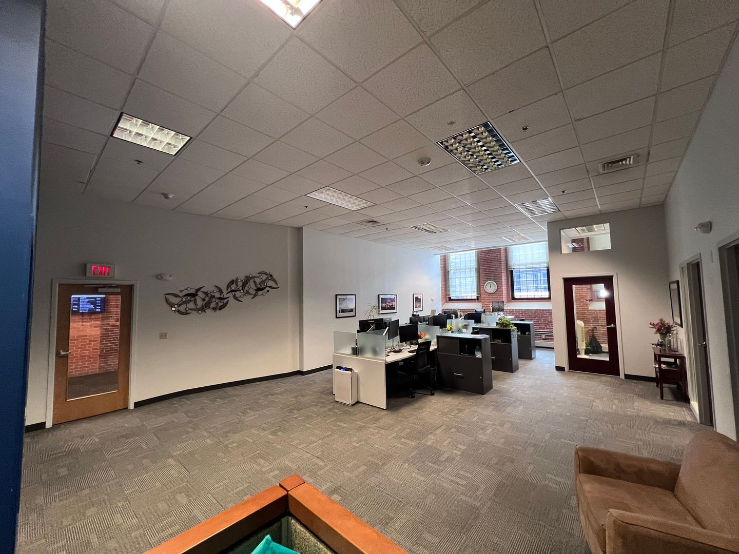 MOVE IN READY - 1,917 RSF 1st floor (suite #135), Office space, three (3) large offices and one (1) conference room, large space for open concept desk/cubicles, kitchenette with sink, very high ceilings, exposed brick, and large windows. Six (6) parking spaces included in rent. Nero’s Cafe next door. Move-in-ready. Available now. Walking distance to downtown, Statehouse, Mall and train.